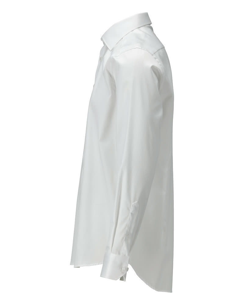 Smalle pasvorm. Inzet in de rug die ervoor zorgt dat het overhemd de bewegingen van het lichaam volgt en mooi over de rug valt. Katoen met extra lange vezels. Cut-away kraag. Kraag met boord. Knoopsluiting. Verstelbare manchetten.